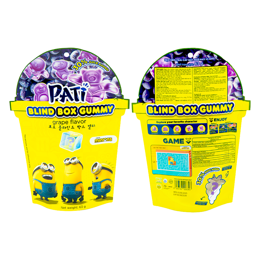 Tên sản phẩm | Kẹo dẻo trái cây lột vỏ PATI vị nho mẫu đơn |