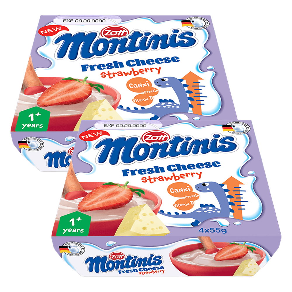 | Tên sản phẩm | Phô mai tươi Montinis vị Dâu 220gr (4*55gr) |