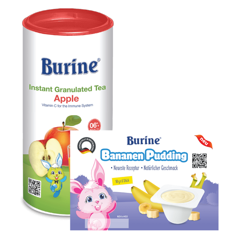 Combo 1 Trà Cốm Hoa quả Burine - Táo Tây (200g/hộp) và 1 Pudding Burine Vị Chuối (Vỉ 6 x 50g)