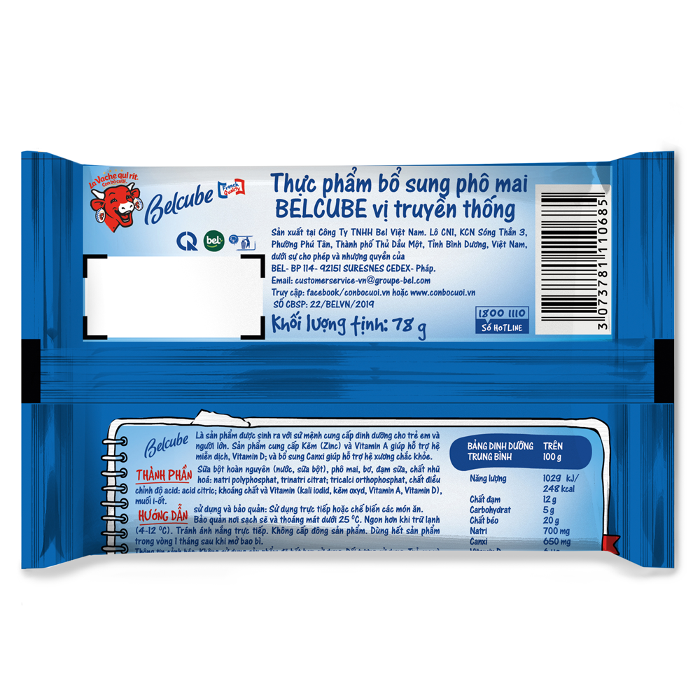 Thực phẩm bổ sung phô mai Con Bò Cười vuông Belcube vị truyền thống 78g