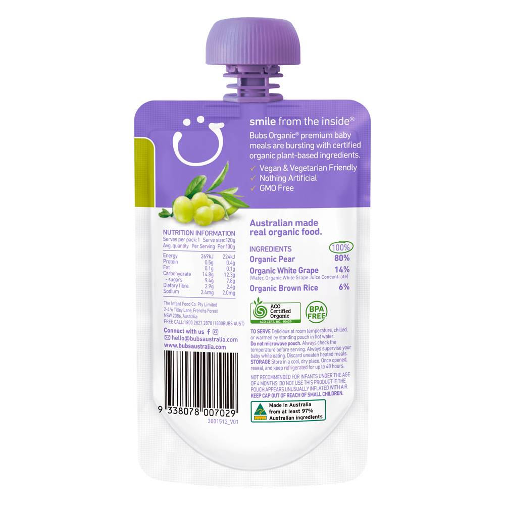 Trái Cây Nghiền Bubs Organic Lê & Nho