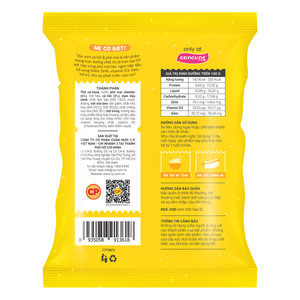 | Nhà sản xuất | CÔNG TY CỔ PHẦN CHĂN NUÔI C.P. VIỆT NAM - CHI NHÁNH 3 TẠI THÀNH PHỐ HỒ CHÍ MINH Lô C4-3, đường D5 và Lô C4-4, đường N10, Khu công nghiệp Tân Phú Trung, X. Tân Phú Trung, H. Củ Chi, TP. Hồ Chí Minh, Việt Nam. |