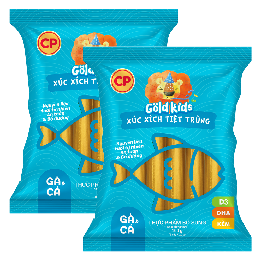 Combo 2 Xúc Xích Tiệt Trùng Goldkids Gà & Cá