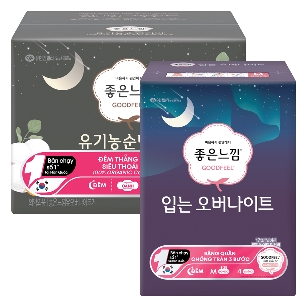 Combo 1 Băng vệ sinh GoodFeel lõi cotton ban đêm 33cm (12 miếng) và 1 Băng vệ sinh quần GoodFeel (4 miếng)
