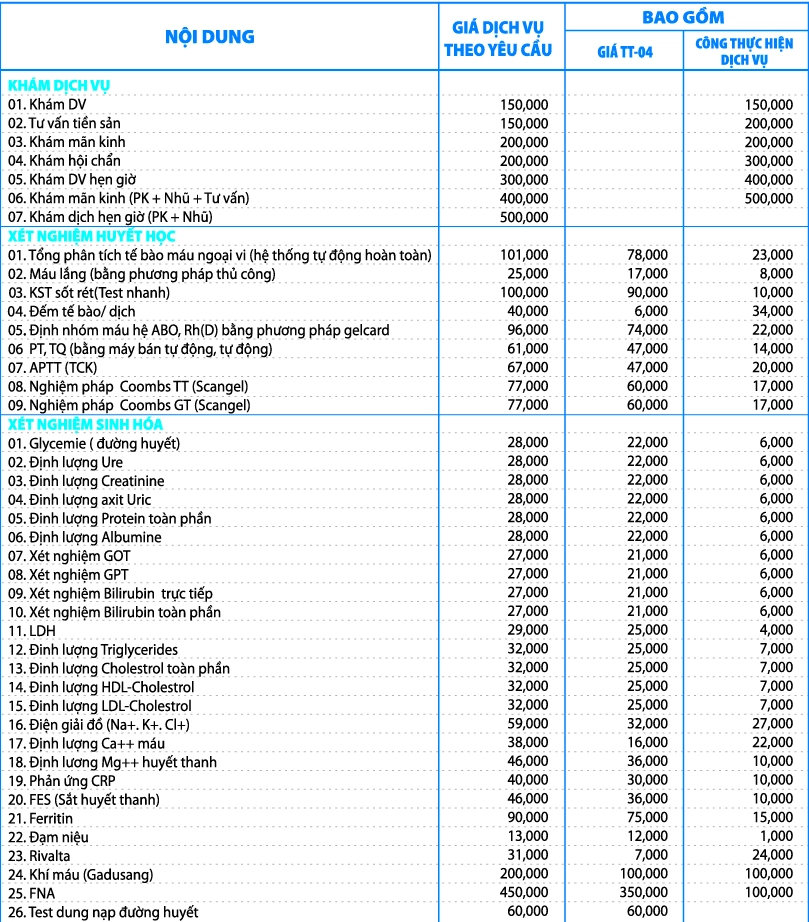 Bảng giá khám dịch vụ theo yêu cầu tại bệnh viện Từ Dũ