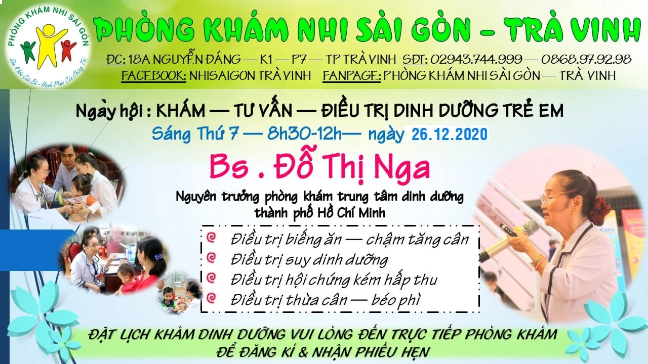 Là phòng khám chuyên về thăm khám và chăm sóc sức khỏe cho trẻ em, phòng khám nhi Sài Gòn của tỉnh Trà Vinh luôn đề cao chất lượng dịch vụ, khám tận tâm, chữa tận tình cho các con. Bên cạnh đó, phòng khám còn tổ chức nhiều hoạt động khám - tư vấn - điều trị dinh dưỡng cho các con vào các sáng thứ 7.