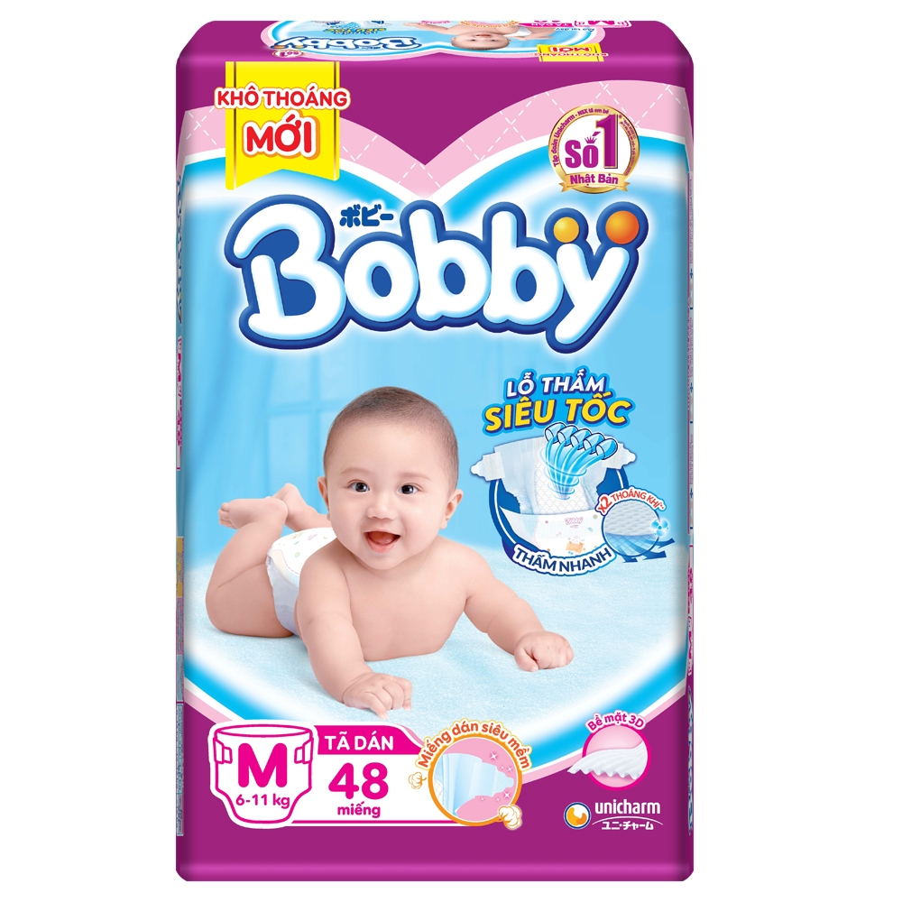 Bỉm tã dán Bobby siêu thấm size M 48 miếng (6-11kg)