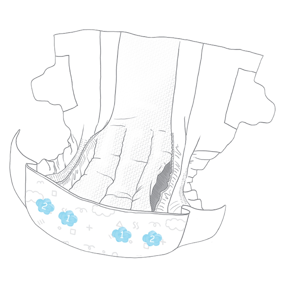 . Lần lượt điều chỉnh và cố định miếng dán đúng vào các vị trí tương ứng ở phần trước tã (có đánh số để việc dán được cân bằng).