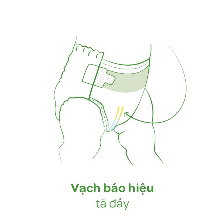. Vạch báo hiệu tã đầy: mẹ có thể dễ dàng nhận biết thời điểm bé cần được thay tã chỉ cần nhìn vào màu sắc của vạch báo hiệu này.