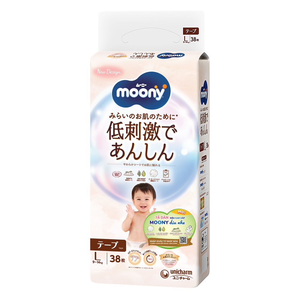 Tã dán Moony Natural/Moony Dịu nhẹ (L, 38 miếng) (giao bao bì ngẫu nhiên)