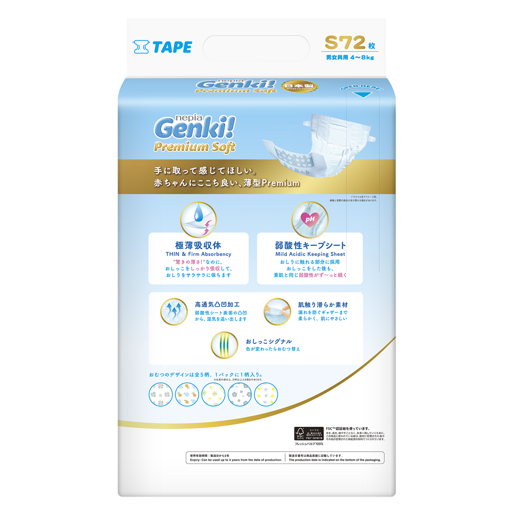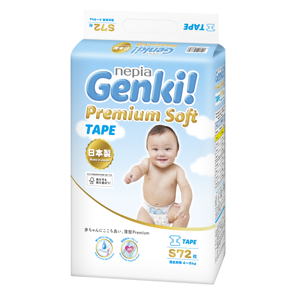 | Tên sản phẩm | Bỉm tã dán Genki size S 72 miếng (4-8kg) |