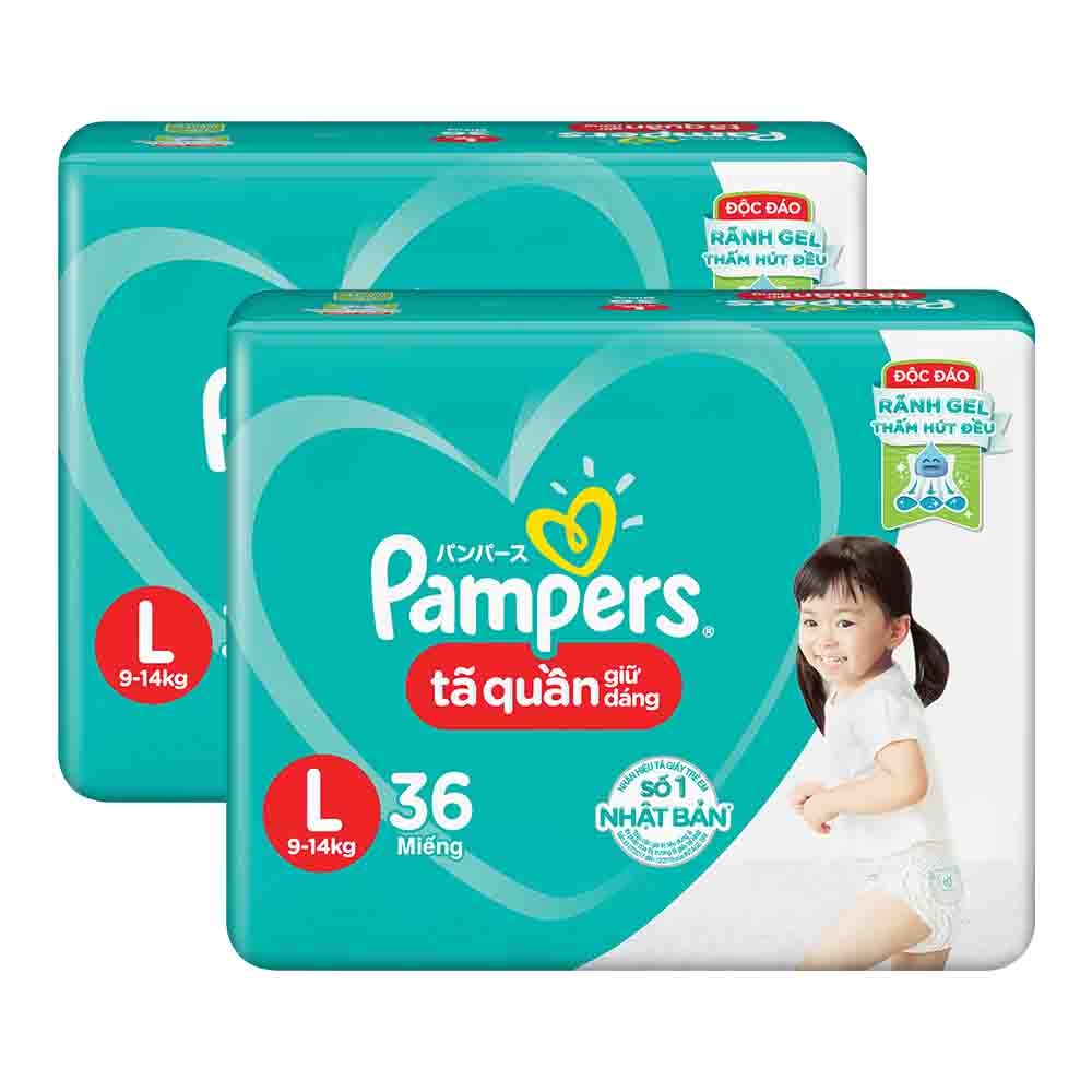 Combo 2 gói Bỉm tã quần Pampers giữ dáng size L 36 miếng (9-14kg)