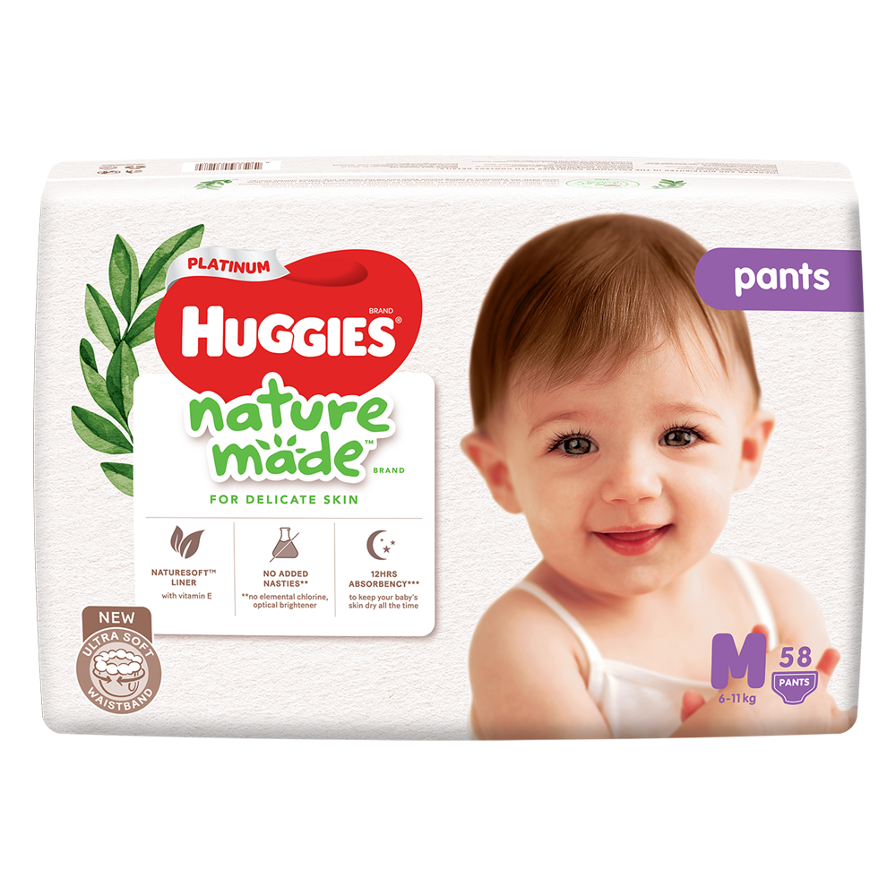 | Tên sản phẩm | Bỉm tã quần Huggies Platinum Nature Made M size 58 miếng (6-11kg) |