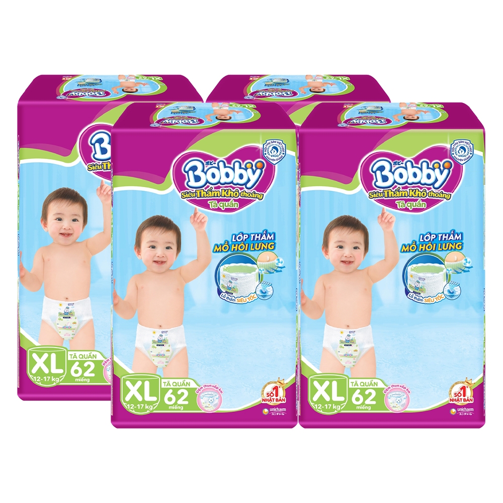 Combo 4 gói Bỉm tã quần Bobby size XL 62 miếng (12-17kg)