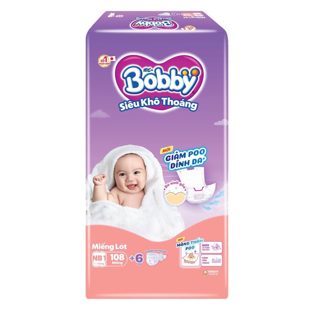 Miếng lót Bobby size Newborn 1 108 miếng (dưới 5kg) (giao bao bì ngẫu nhiên)