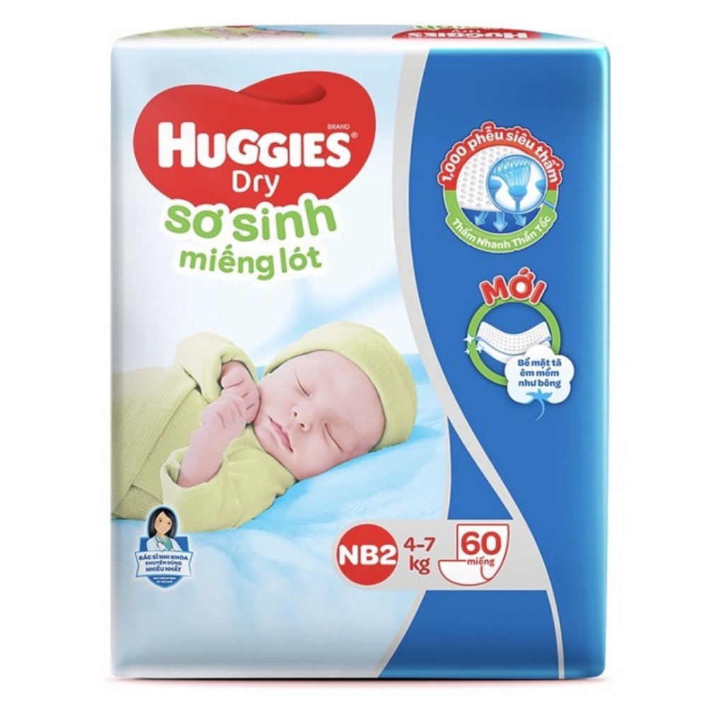 Miếng lót Huggies size Newborn 2 60 miếng (4-7kg)