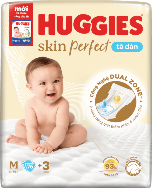 | Tên sản phẩm | Tã dán cực đại Huggies Skin Perfect (M, 6-11kg, 76 miếng) |