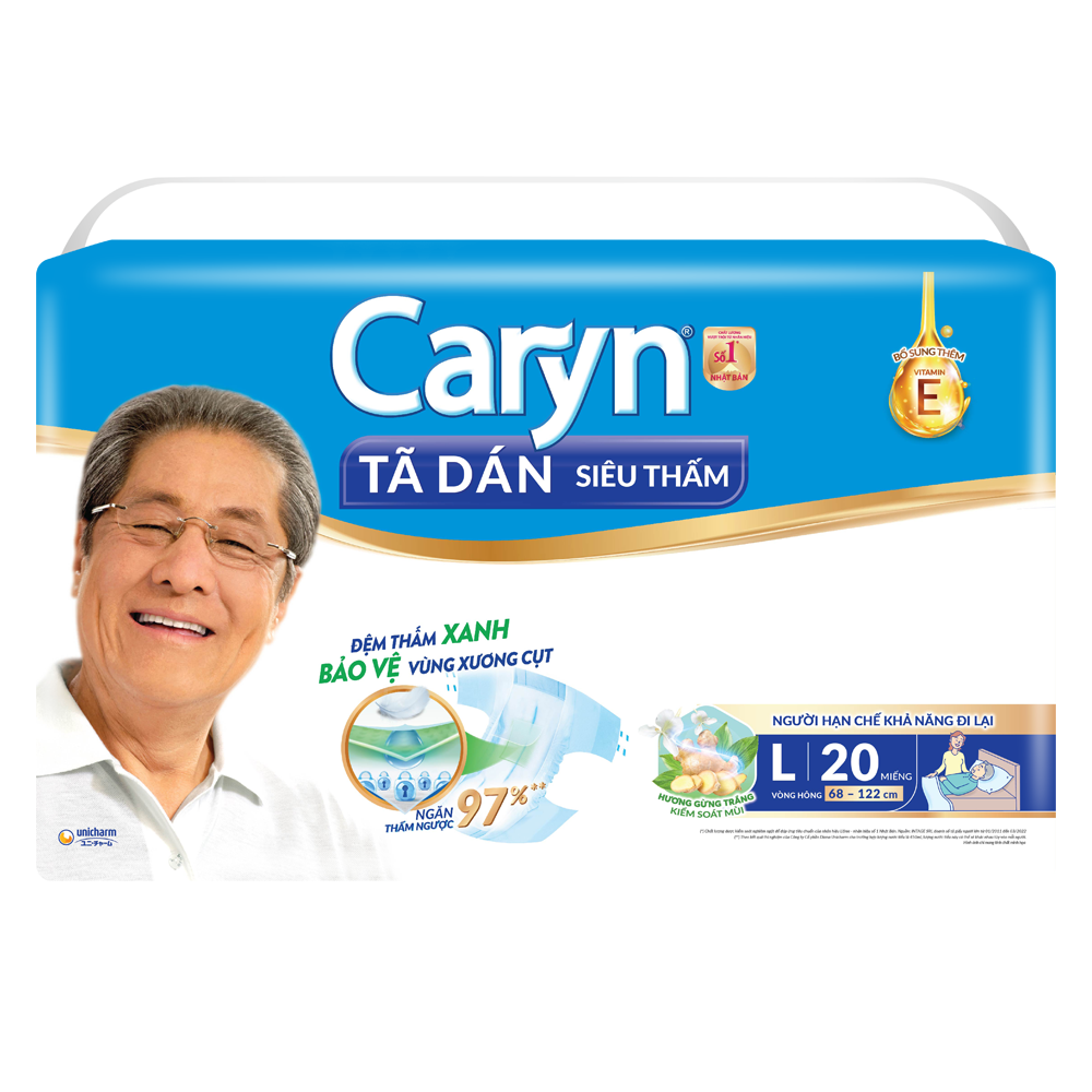| Tên sản phẩm | Tã dán giấy Caryn Siêu Thấm size L (hông 68 -122cm) - 20 miếng |