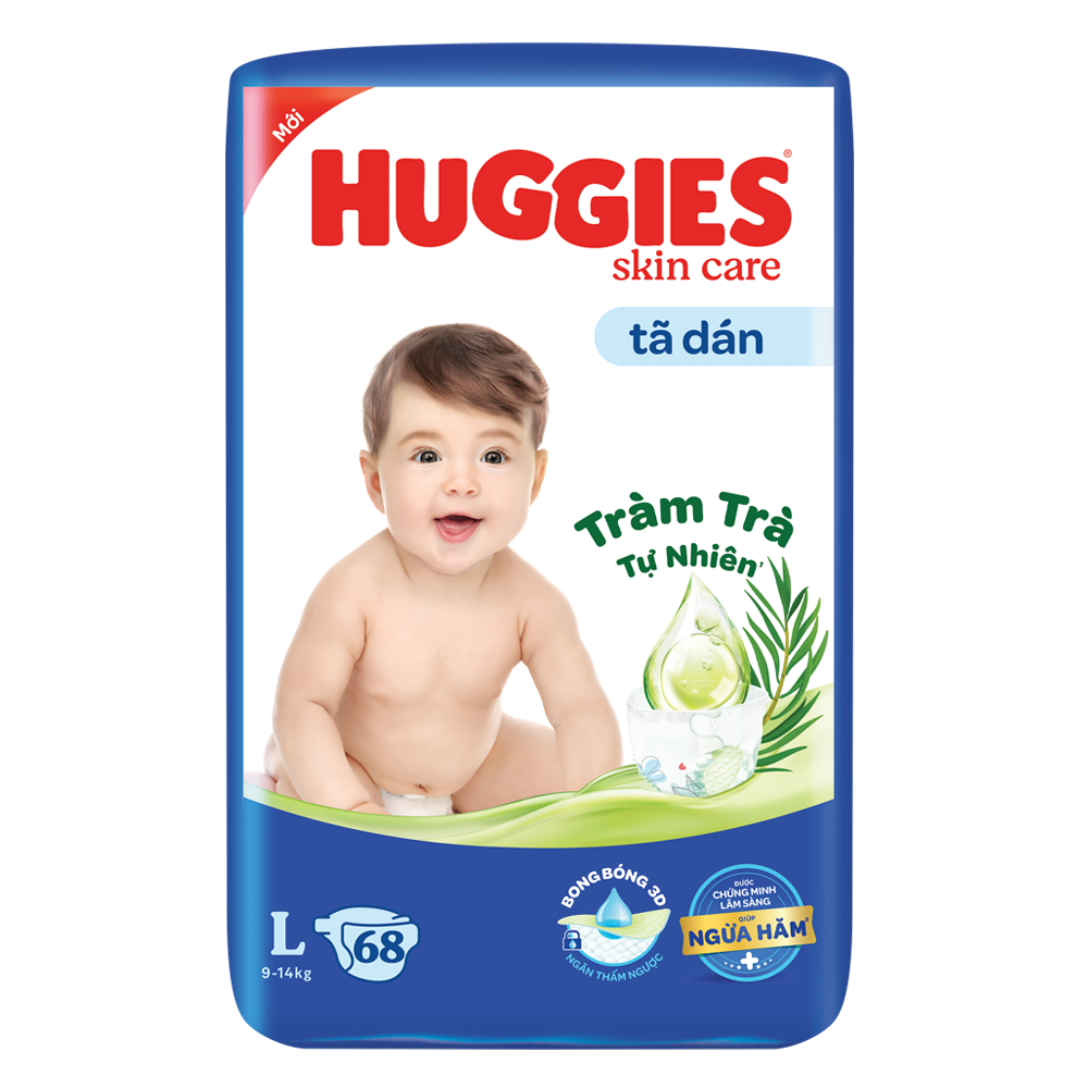 | Tên sản phẩm | Tã dán Huggies Skincare cực đại (L, 9 - 14kg, 68 miếng) |