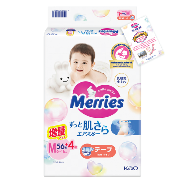 Tã dán Merries (M, 6-11kg, 56 miếng)