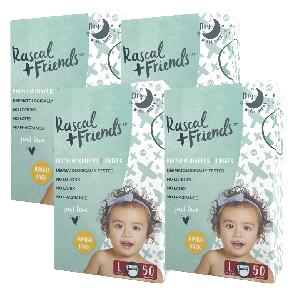 Combo 4 Tã dán sơ sinh Rascal + Friends (L, 10-15kg, 50 miếng)
