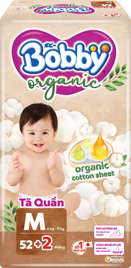 | Tên sản phẩm | Tã quần Bobby Organic M52 Miếng (+2 miếng) |