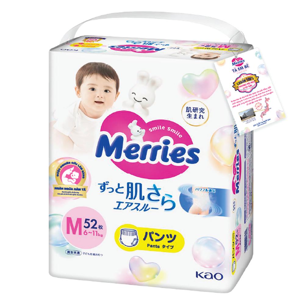 Combo 2 Tã quần Merries (M, 6-11kg, 52 miếng)