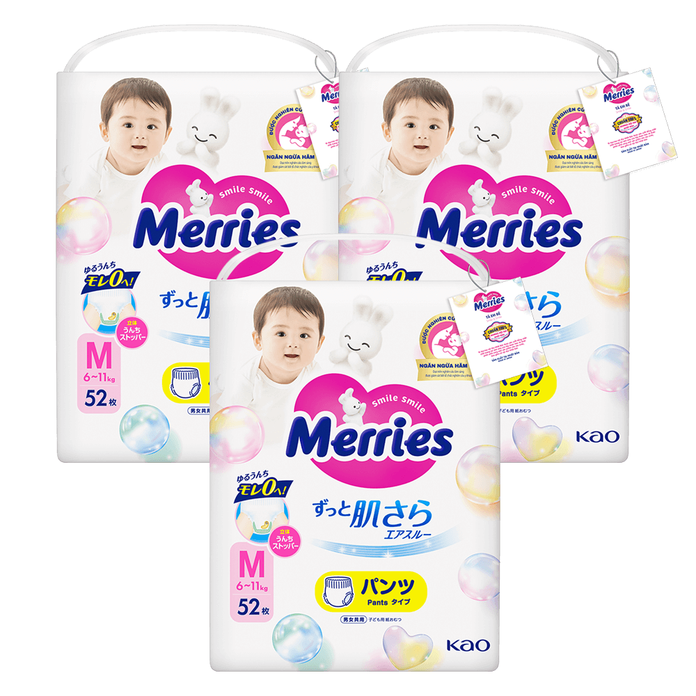 Combo 3 Tã quần Merries (M, 6-11kg, 52 miếng)