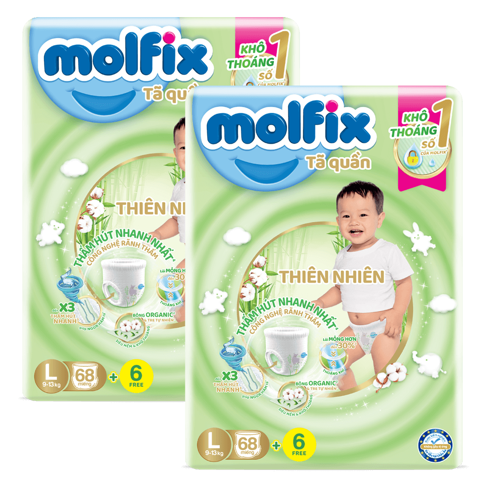 Tên sản phẩm Tã quần Molfix Thiên Nhiên (L, 9 - 13kg, 68 miếng)