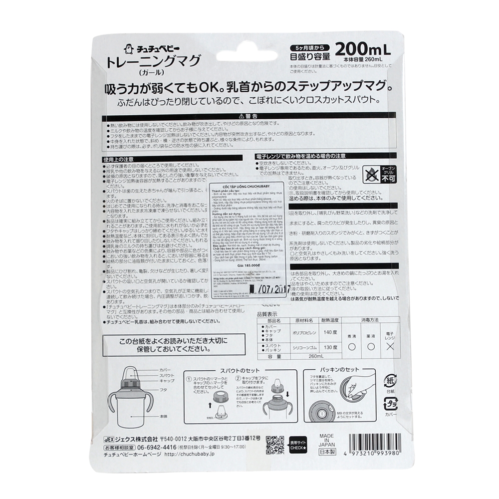 - Cốc có dung tích 200ml, thích hợp với nhu cầu uống nước, sữa hay nước hoa quả mỗi ngày của bé