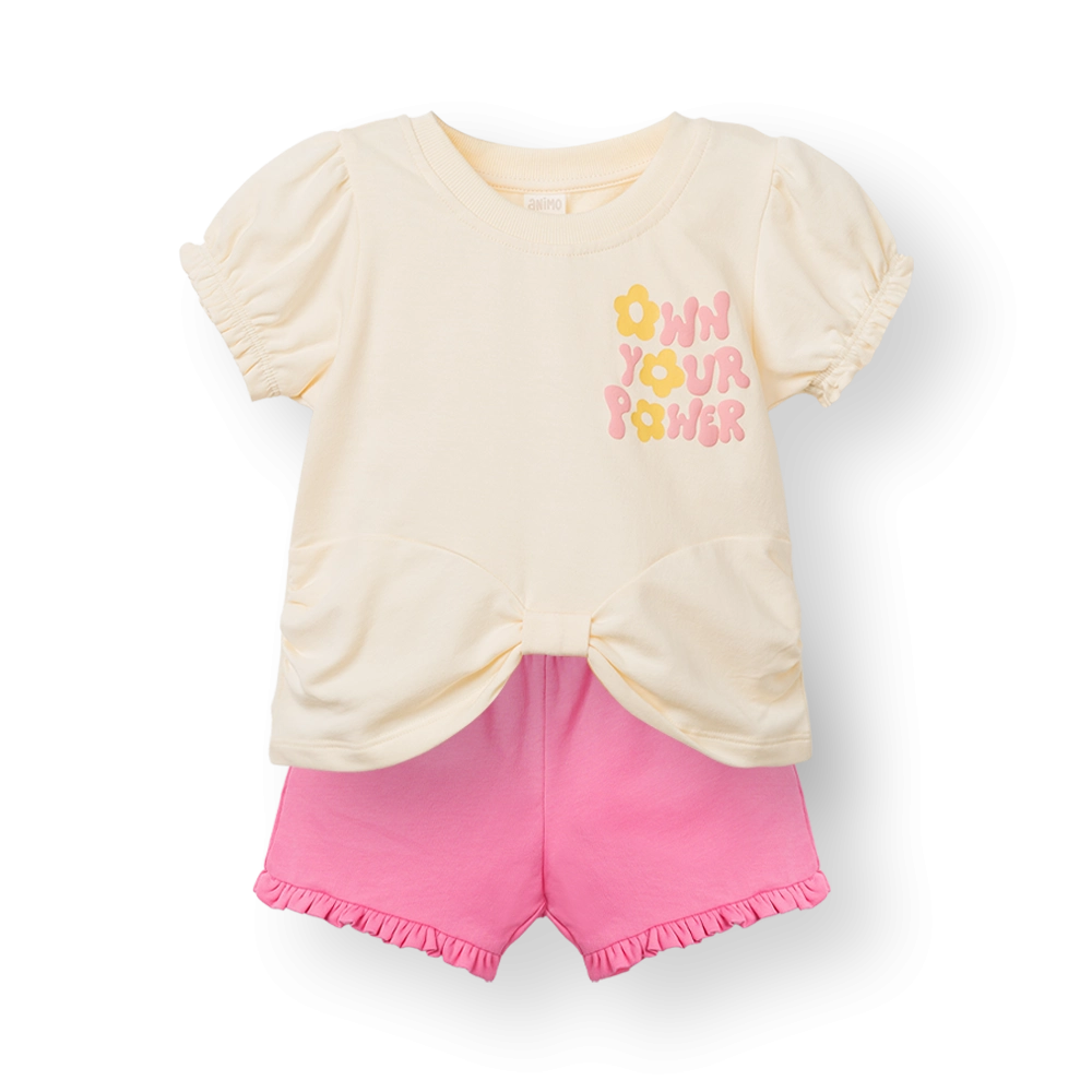 Bộ bé gái ngắn Animo ST1225071 (1-6Y,Kem-hồng,TT01)