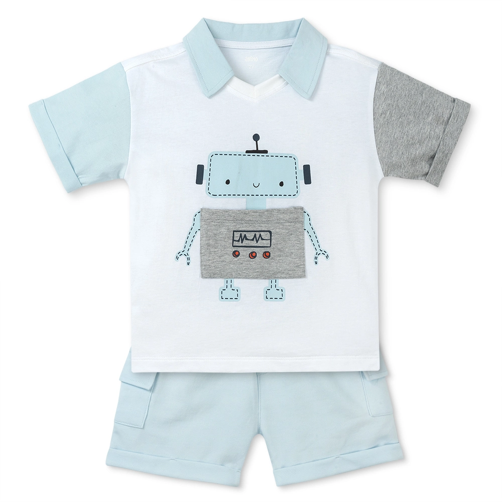 Bộ polo bé trai ngắn Animo HN1225031 (1-6Y, Trắng-biển)