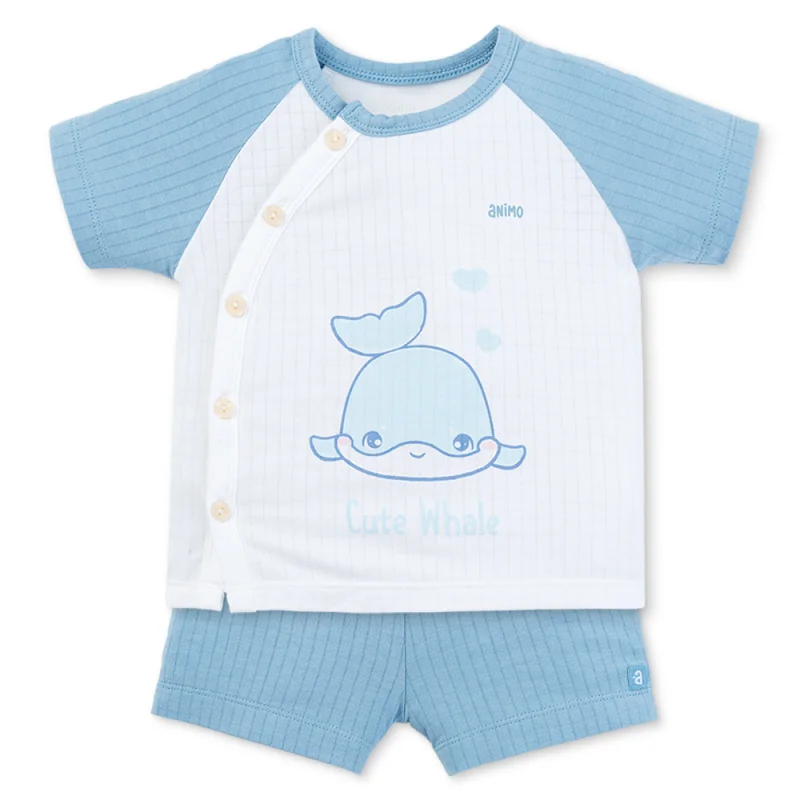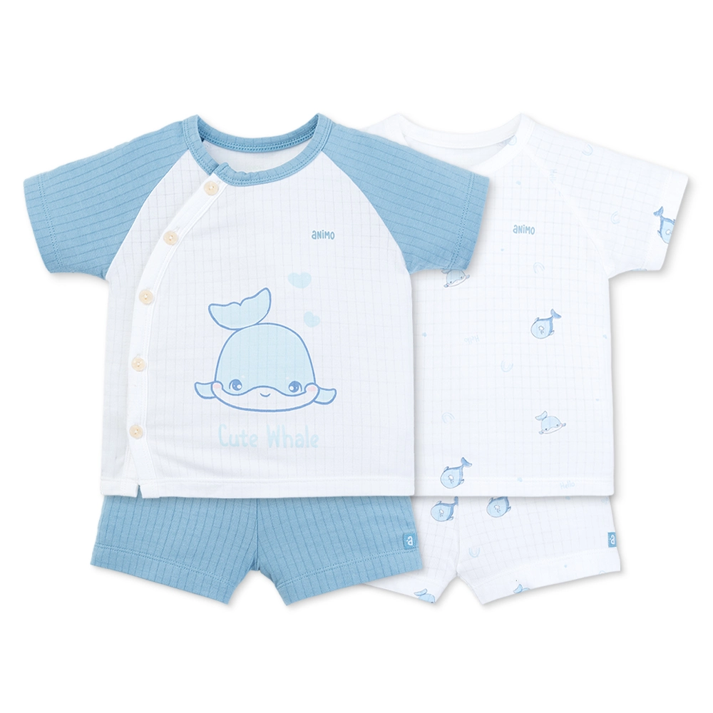 Set 2 bộ rayon chống muỗi ngắn Animo VD1225018 (0-24M, Trắng-xanh biển, NN06)