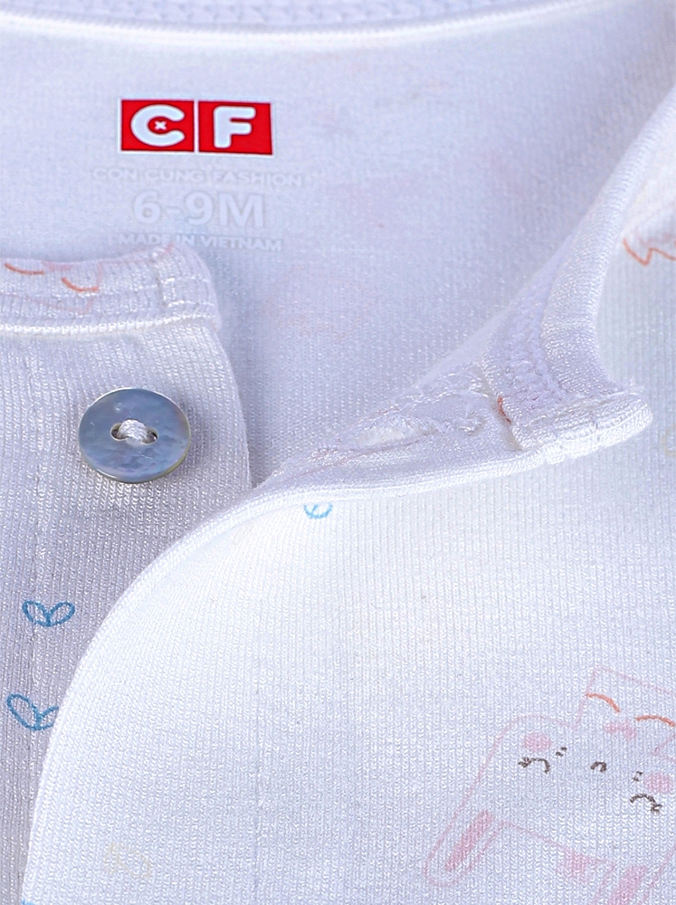 Kiểu dáng được thiết kế với dạng cài giữa với nút xà cừ mỏng nhẹ dễ dàng tháo mở, cùng màu sắc pastel nhẹ nhàng và họa tiết dễ thương sẽ mang đến sự thoải mái và không kém phần thời trang cho bé nhà bạn. Ngoài ra, các đường nối, đường cuốn biên trên sản phẩm không bị nổi cộm gây khó chịu và ngứa da bé cho phép bé vận động dễ dàng.