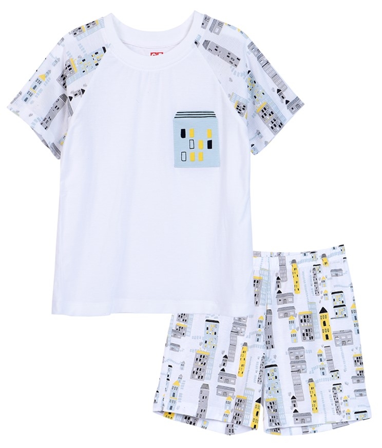 Bộ áo quần thun mặc nhà bé trai ngắn CF B1020027 (Trắng)