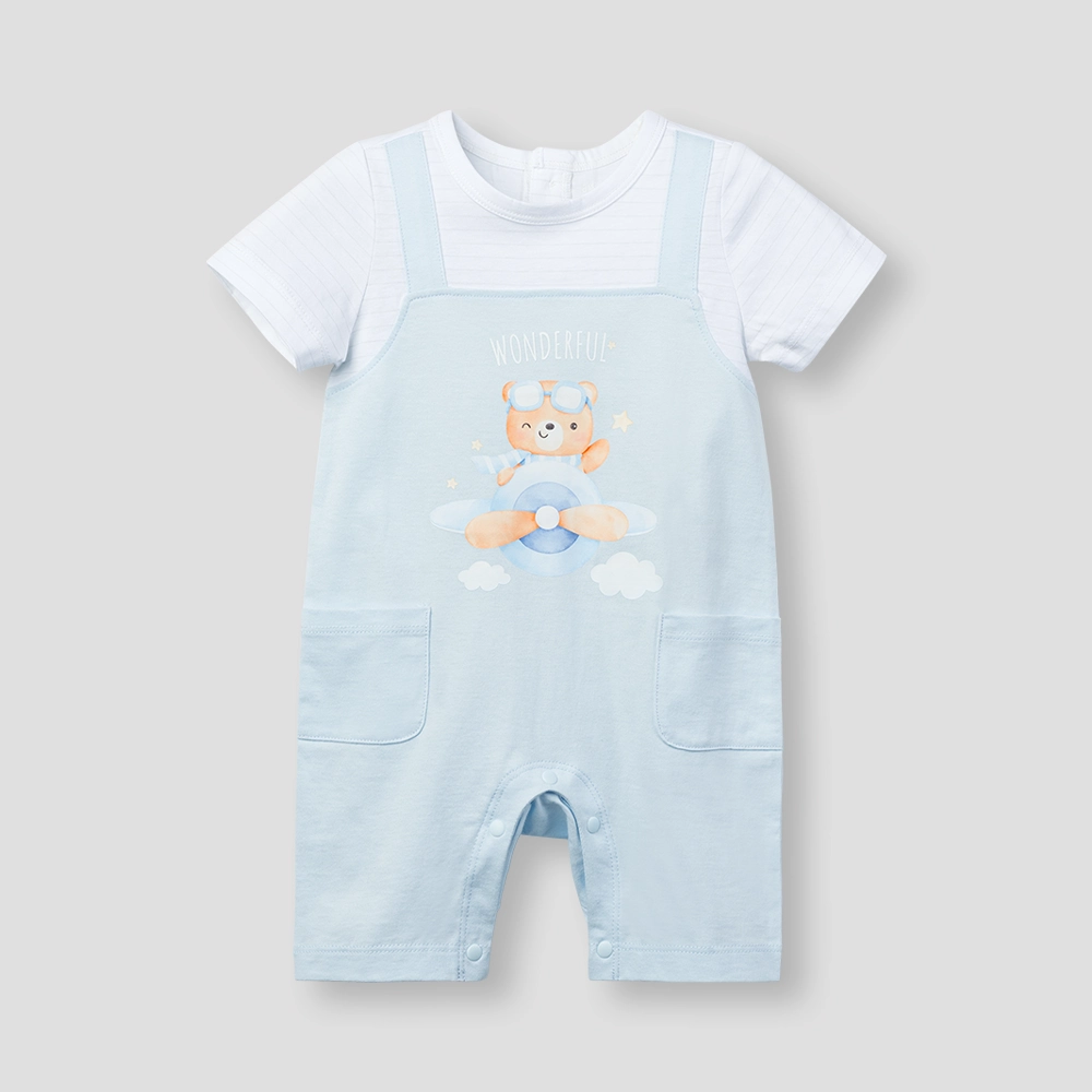 Bodysuit bé trai đùi Animo VD0126003 (0-12M,Xanh nhạt - trắng) thiết kế liền thân tiện lợi, phối giả yếm dễ thương cùng họa tiết gấu bay ngộ nghĩnh, mang lại vẻ ngoài đáng yêu cho bé.