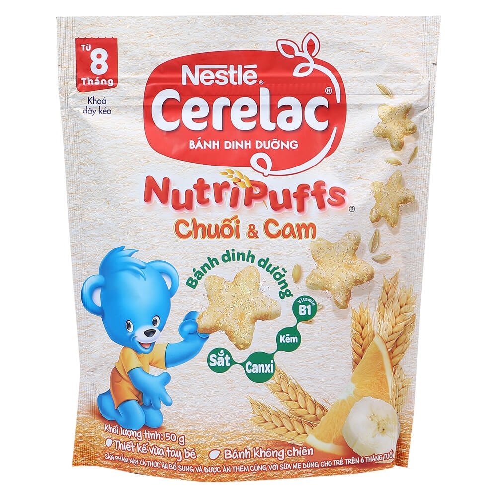 Bánh dinh dưỡng Nestle Cerelac Nutripuffs Vị Chuối và Cam 50