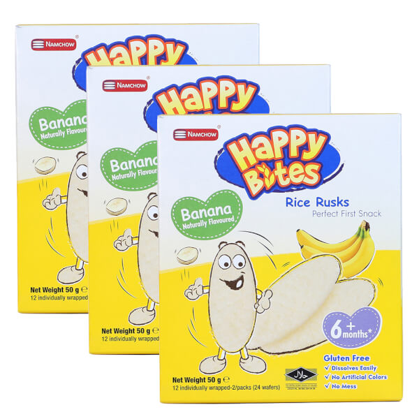 Combo 3 Bánh Gạo Ăn Dặm Cho Trẻ Em Happy Bites Chuối 50g