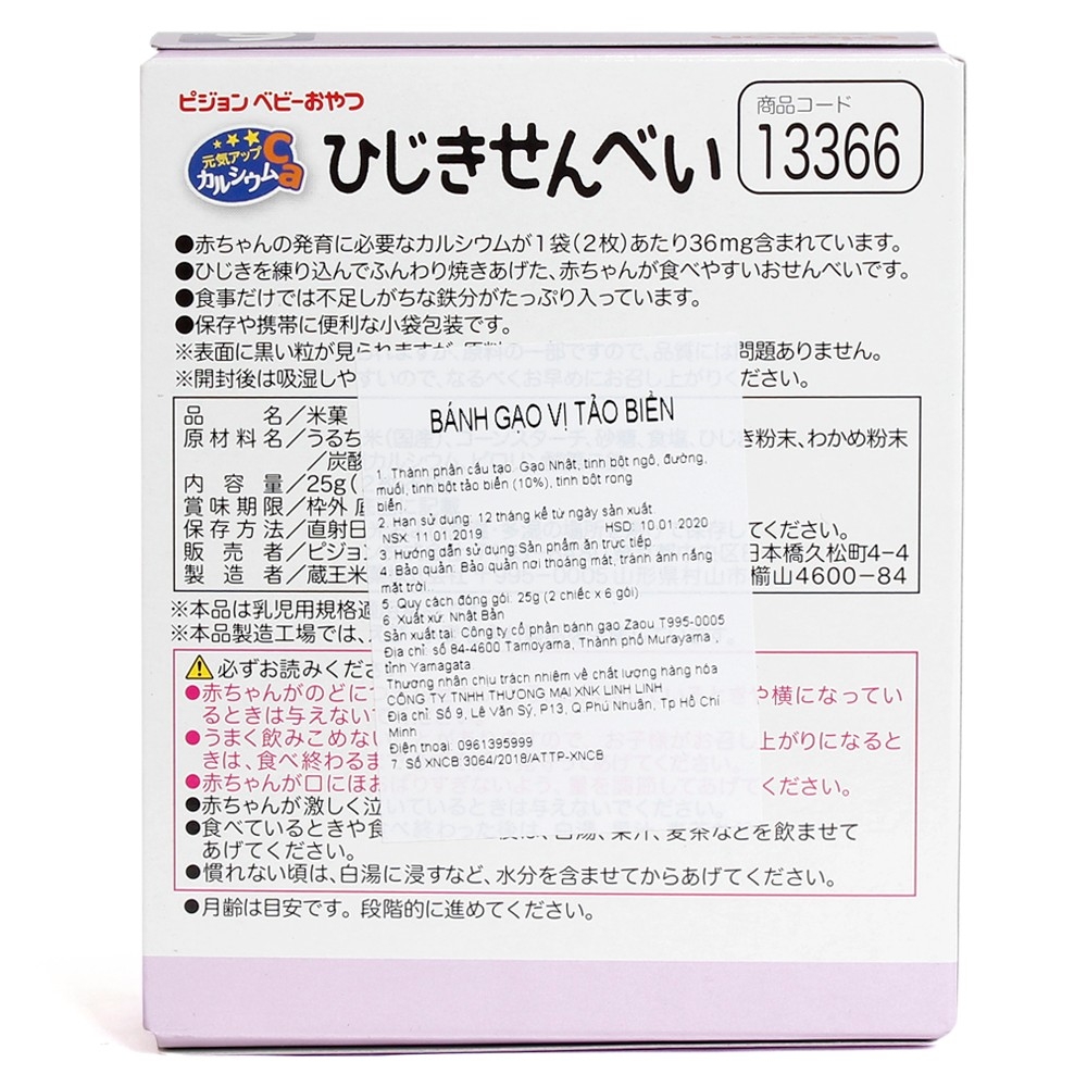 | Tên sản phẩm | Bánh gạo vị tảo biển Pigeon 25g |