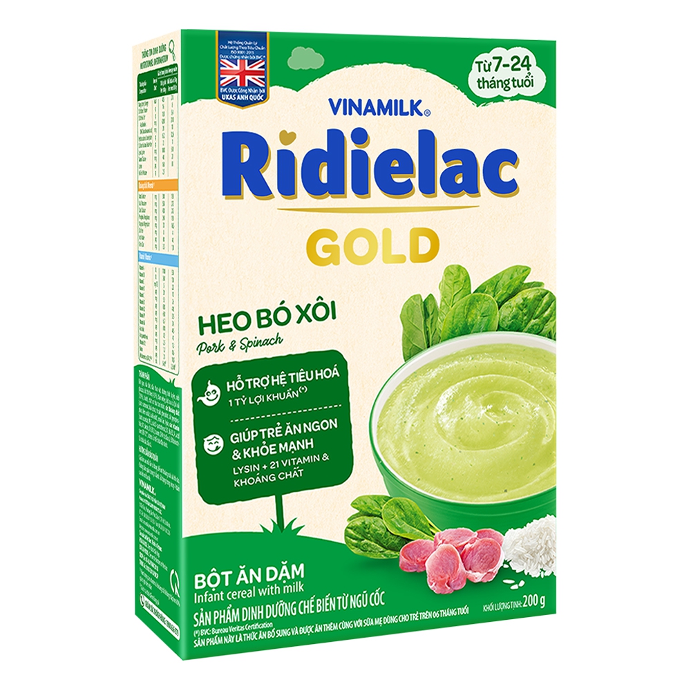 - Tên sản phẩm : Bột ăn dặm Ridielac Gold heo bó xôi HG 200g