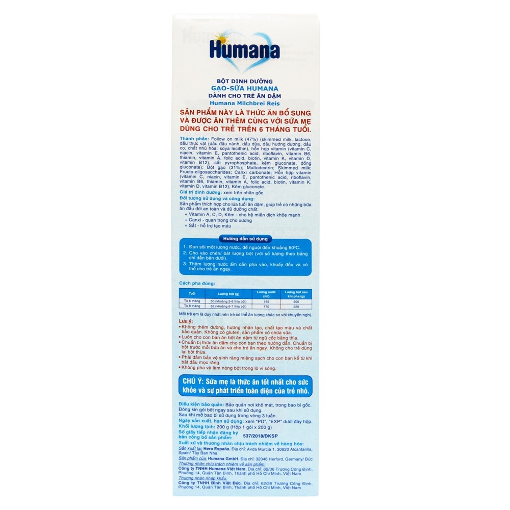 Bột dinh dưỡng ăn dặm Humana Gạo sữa - Humana Milchbrei Reis