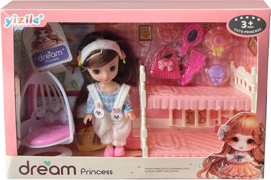. Thiết kế búp bê công chúa kết hợp giường ngủ, xích đu và các phụ kiện đi kèm, tạo không gian vui chơi phong phú