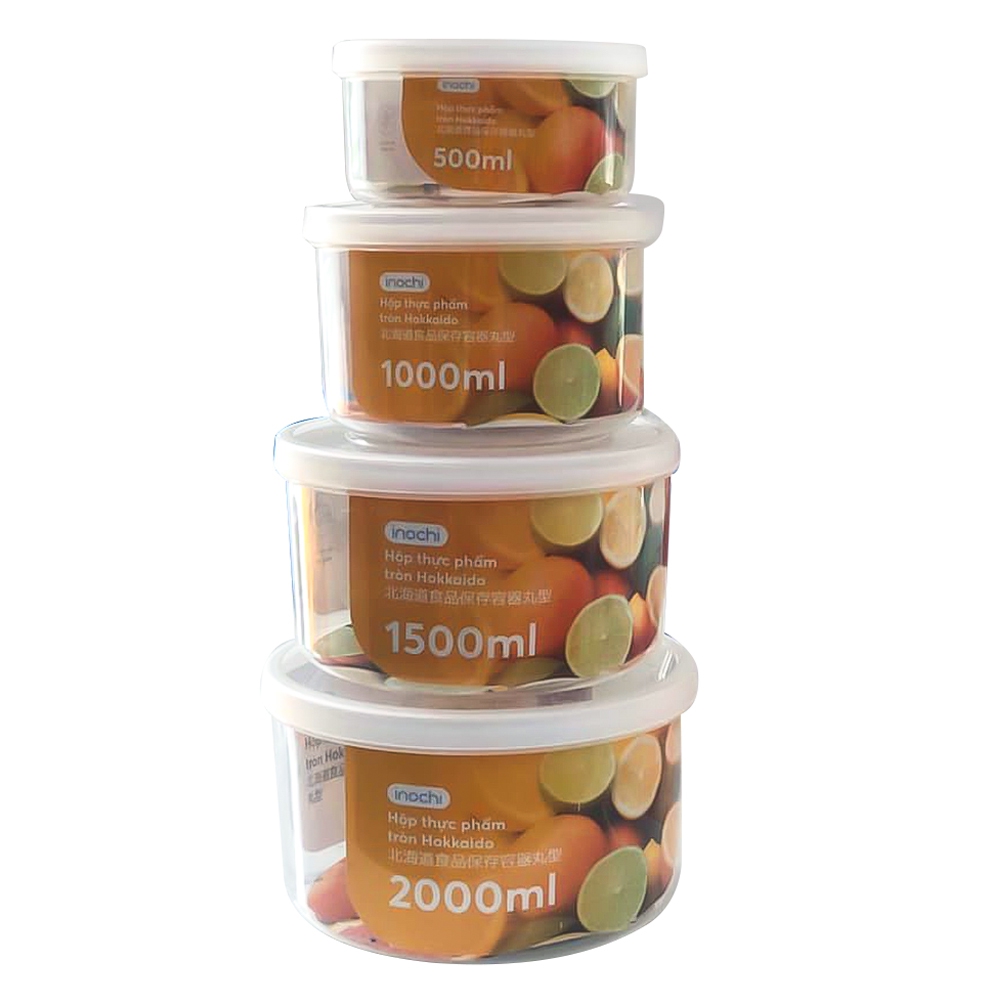 Bộ 4 hộp thực phẩm tròn Hokkaido 500, 1000, 1500, 2000ml (INC)