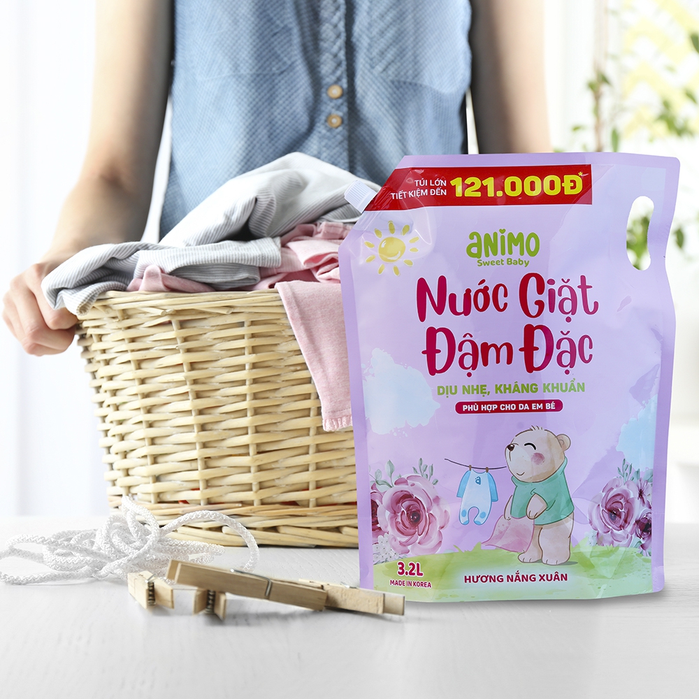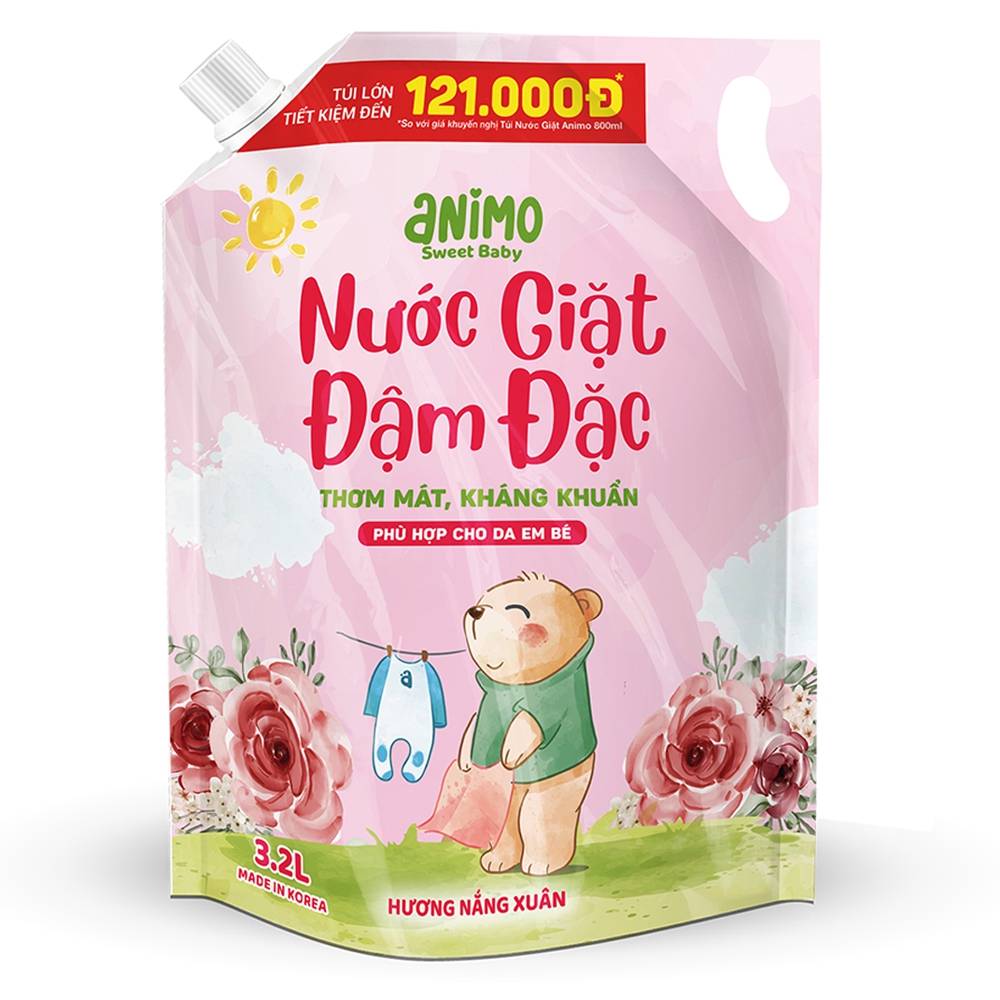 Combo 2 Nước giặt Hàn quốc Animo hương Nắng xuân 3,2L (Hồng phấn)