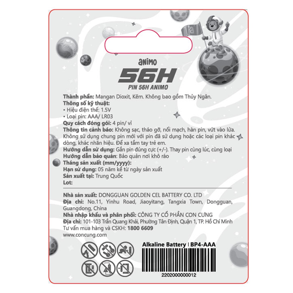 Vỉ 4 pin AAA 56h Animo (BP4-AAA)
