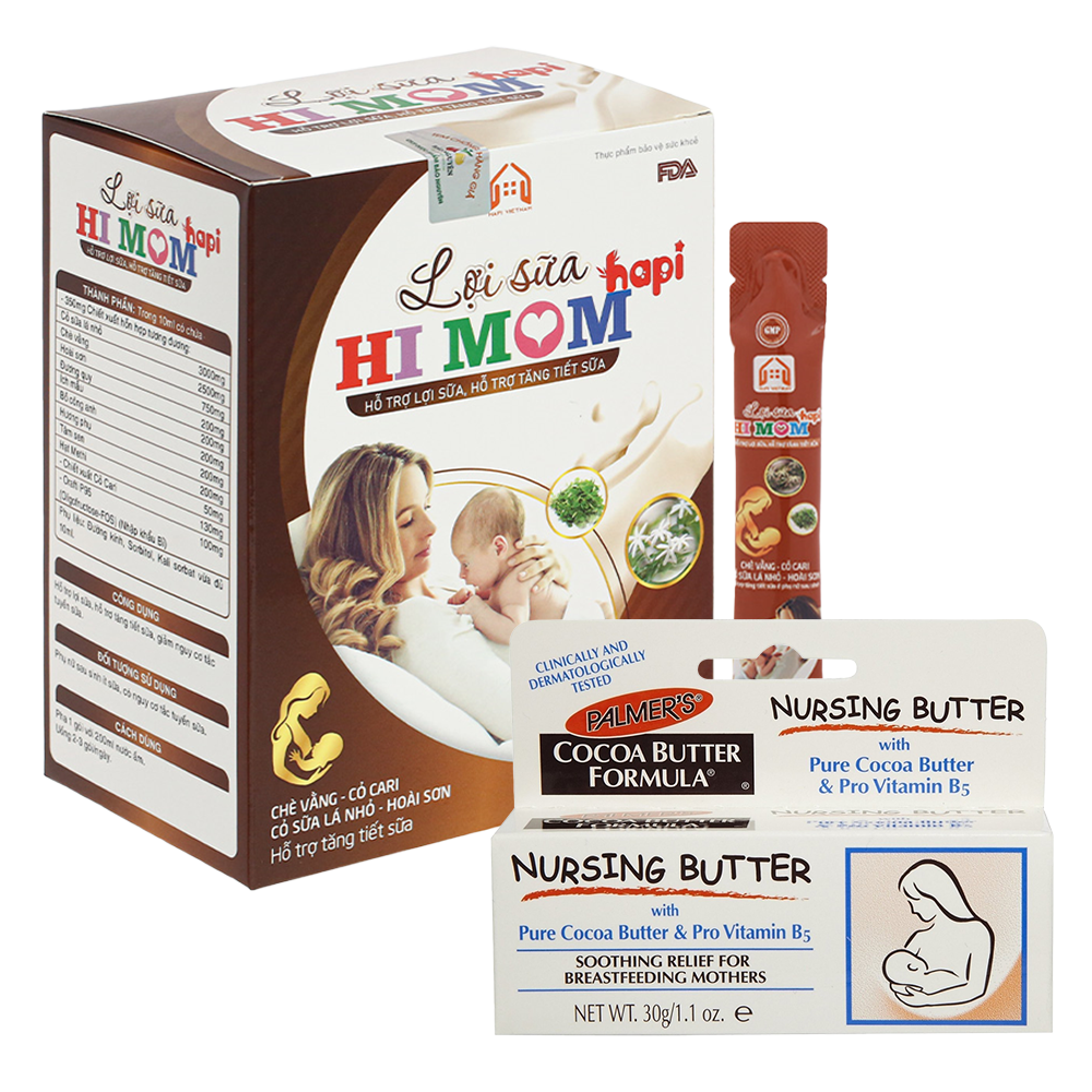 Combo Lợi sữa Hi Mom Hapi và Kem ngăn ngừa nứt nẻ và giảm đau đầu ti khi cho con bú Palmer's 30g