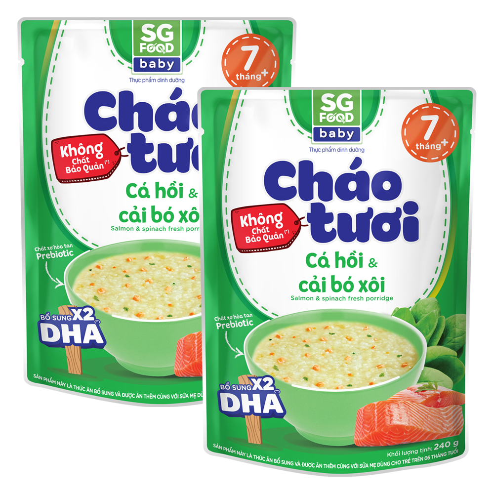 Combo 2 Cháo tươi Baby cá hồi cải bó xôi, SG Food, 10 tháng, 240g
