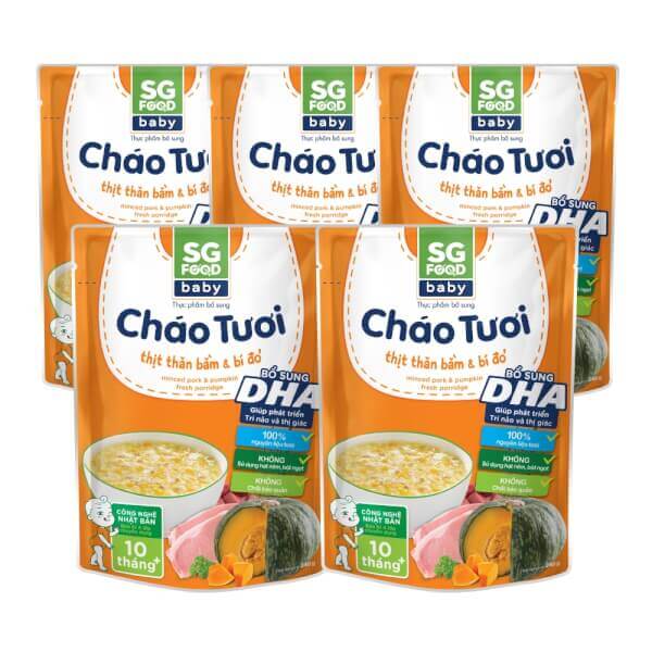 Combo 5 gói Cháo tươi Baby thịt thăn bằm bí đỏ, SG Food, 240g