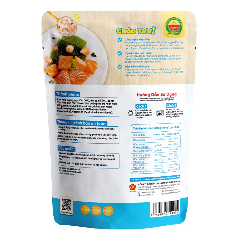 | Tên sản phẩm | Cháo tươi cá hồi rong biển |