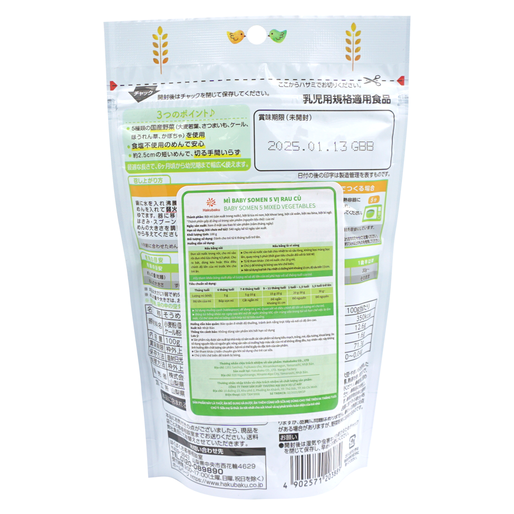Mì ăn dặm Hakubaku - Mì Baby Somen 5 vị rau củ